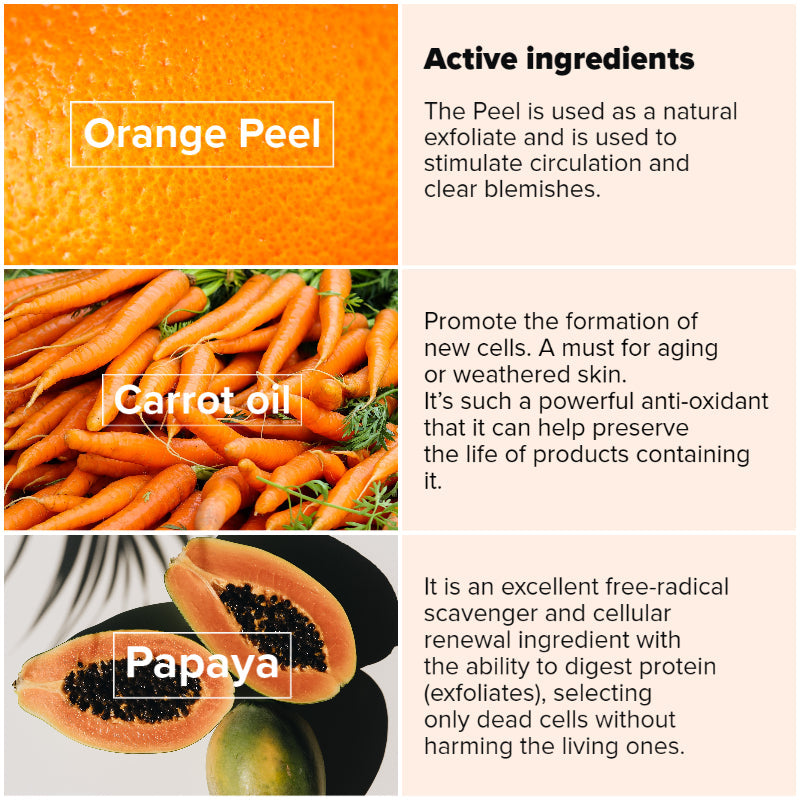 Carrot oil - It’s such a powerful natural anti-aging antioxidant that it can help preserve the life of products containing it. Promotes the formation of your skin's new cells for a healthy and even complexion.